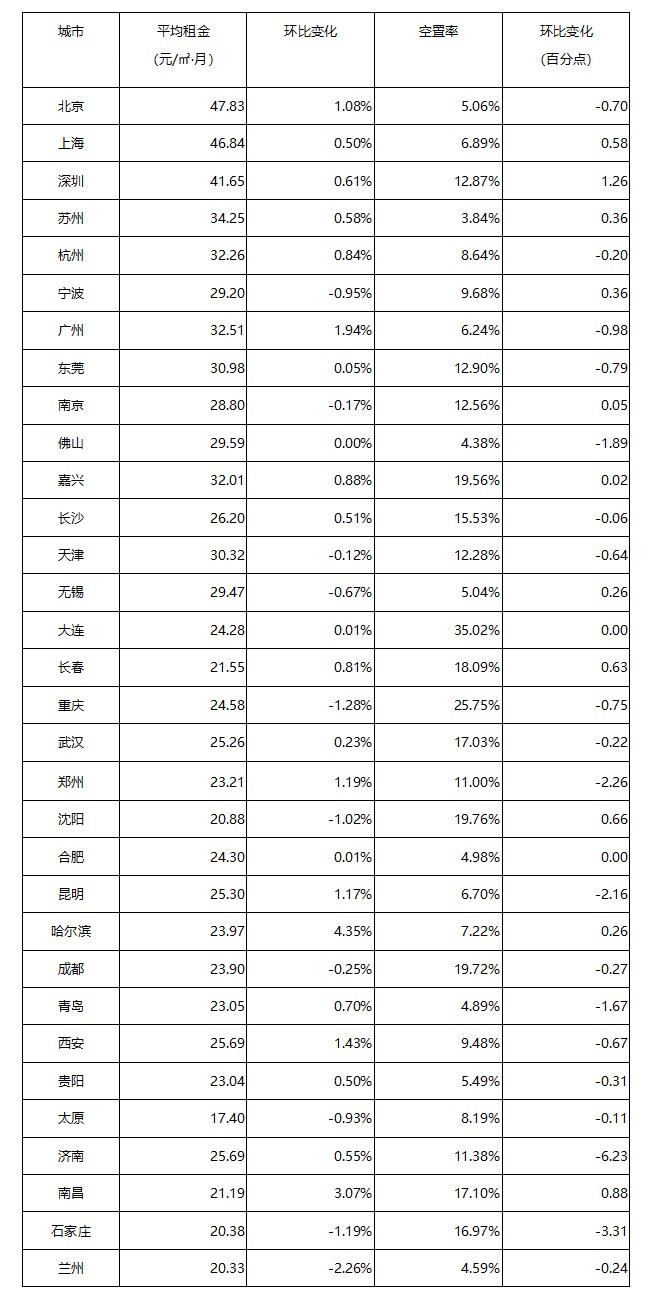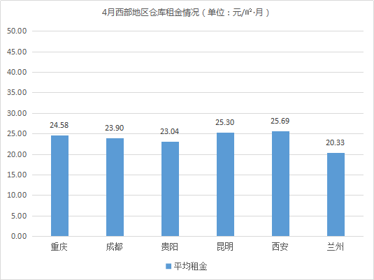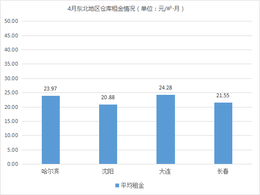 全国32个城市仓库平均租金为27.79元/㎡·月,环比下降0.83%。其中,东部地区仓库平均租金(32.18元/㎡·月)高于西部(23.81元/㎡·月)、中部(22.93元/㎡·月)、东北(22.67元/㎡·月)地区。相较3月,东北地区仓库平均租金有所上涨,增幅为4.22%;东部、中部、西部地区仓库平均租金有所下降,降幅分别为5.72%、4.55%、2.47%。北京、上海、深圳仓库平均租金仍然领跑全国,均高于40元/㎡·月。相较3月,三个城市仓储市场稳定,仓库平均租金波动不大。受仓储设施条件、地理位置等影响,太原、兰州、石家庄、沈阳仓库租金水平较低,均低于21元/㎡·月。相较3月,四个城市仓库平均租金波动不大,市场稳定。相较3月,哈尔滨仓库平均租金波动最大,环比上涨4.35%,根据哈尔滨政府统计数据显示,近期当地汽车、医药、食品、电子行业增速明显,从而带动仓储需求有所增加。