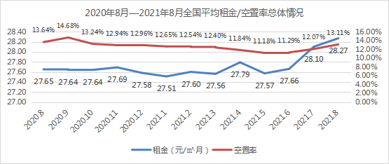 租金、空置率:租金涨幅为0.60%,空置率上升1.13个百分点。