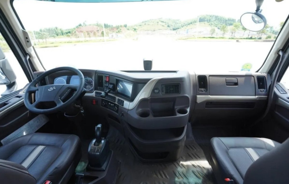 舒适性配置部分,乘龙H7智享版匹配四点大气囊悬置平地板驾驶室,滤震更佳,空间更大;中控及门板处大量采用软皮被覆,进一步提升内饰质感。