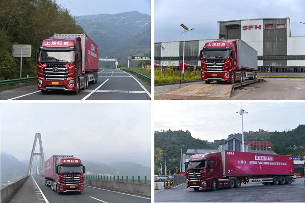 此次穿越长江不停车之旅,由用户彭师傅驾驶挑战车辆:上汽红岩H6杰狮6X4牵引车,搭载上菲红Cursor 11国六发动机,车货总重49吨,从重庆出发,历经巫山峡谷,途径山地、丘陵、平原等多元地形,到达武汉,历时12小时,总行驶里程952公里。