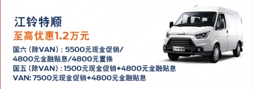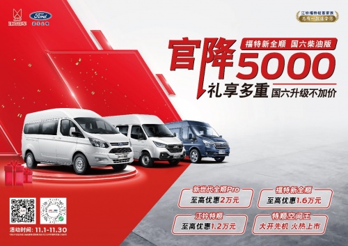 但是,国六标准自7月1日起在全国范围内广泛实施,不是国六车型在很多城市会被限行,因此对物流行业用户和个人用户都将造成极大影响,而购买国六车型就成为当下最正确的选择。作为中国轻客第一品牌的江铃福特轻客,积极响应国家政策,也为了减轻用户的购车压力,推出多重特惠的购车方案,11月1日-11月30日期间购买江铃福特轻客家族产品,即可享2万元的至高优惠,为用户带来真正的实惠。