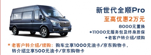 作为领先行业的数字化轻客,新世代全顺Pro重新定义新世代轻客新标杆。其以全面升级的硬核产品力、创新思维的数字化服务、双项终身质保服务承诺,带来更全面、更深层次的“Uptime100%全时营运解决方案”,帮助用户解决用车痛点,提升用车价值,是一款懂客户所想,予客户所需的聪明车。