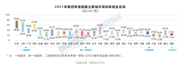 据物联云仓平台数据显示,2025年第四季度全国高标库平均租金为33.01元/㎡·月,环比上涨4.10%。北京、深圳、上海高标库平均租金领跑全国,均高于49元/㎡·月,其中,北京已超过60元/㎡·月;长春、大连、沈阳高标库平均租金水平较低,均低于22元/㎡·月。