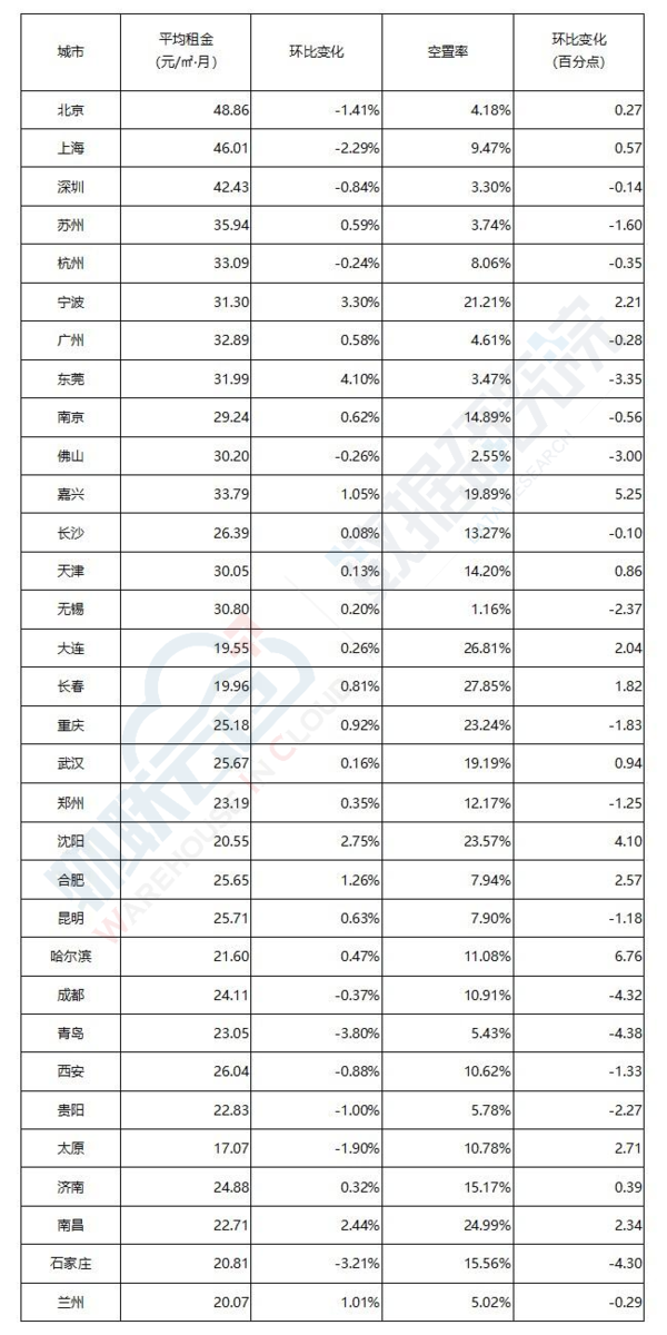租金、空置率:租金涨幅为0.11%,空置率与上月持平
