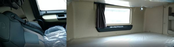 再看细节之处,隐藏式遮阳帘,随意调节,使用方便;连接式杯槽,里面有出风口,夏天可以给水杯降温;副驾的前面,有一个隐形小桌板,使用的时候打开,不用收回去,不占地方;隐形的挂衣架,这些人性化的小设计,卡嫂们会很喜欢!另外这车还搭载了1000W逆变电源,让卡友出门在外用电更方便。