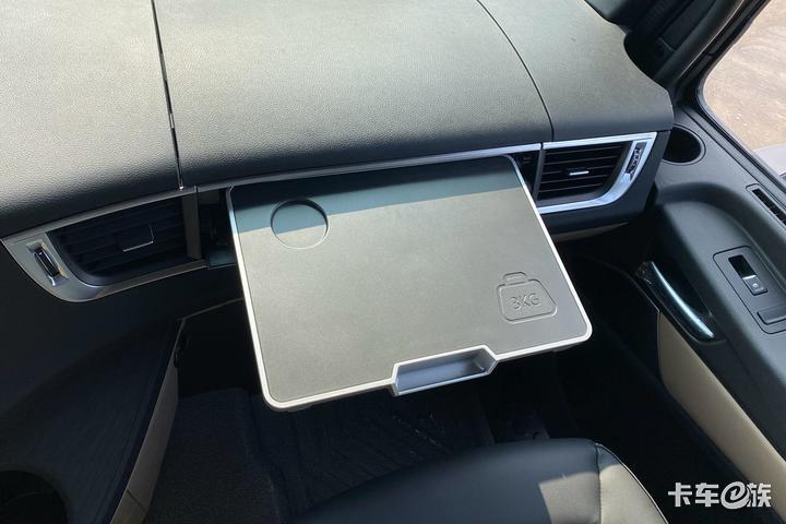 副驾驶位置设置有一块载重3KG的隐藏小桌板,这一设计不仅不占空间,让驾驶室内部保持整洁,还能够满足用户吃饭、看剧等时间对桌案的需求。