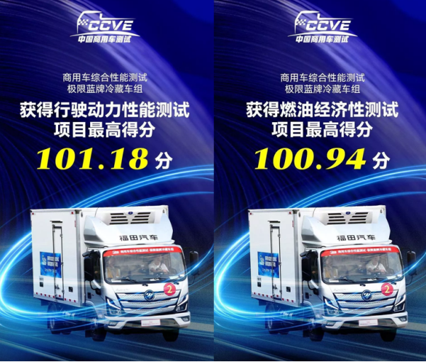 5月20日,全新一代欧马可S1冷藏车在商用车综合性能测试·极限蓝牌冷藏车组的七项