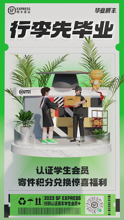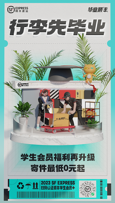 今年毕业季,顺丰强势升级了学生会员权益,让学生们能以更低的价格享受“行李先毕业”。
