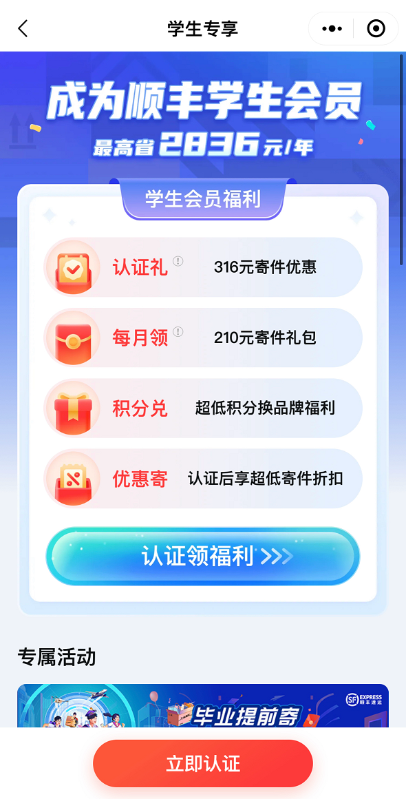 顺丰学生会员认证福利多多