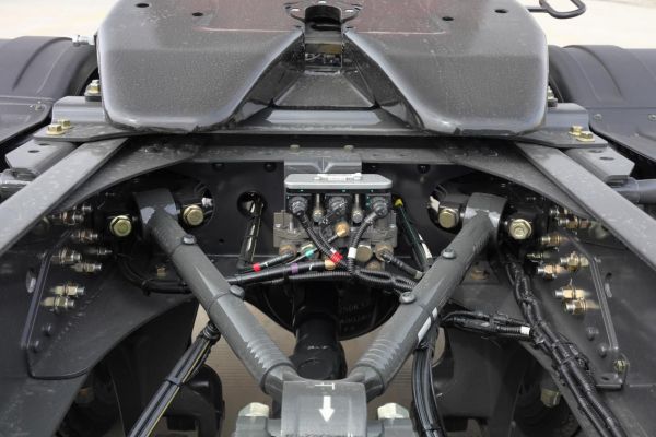 以车架为例,乘龙H7康明斯530马力LNG牵引车整车采用高强度单层车架,在重量降低30%的情况下,强度不降反升,提升了50%。同时,乘龙H7康明斯530马力LNG牵引车还采用了分体式轻量化悬架、轻量化440双后桥、铝合金轮毂、零部件合理降重、
